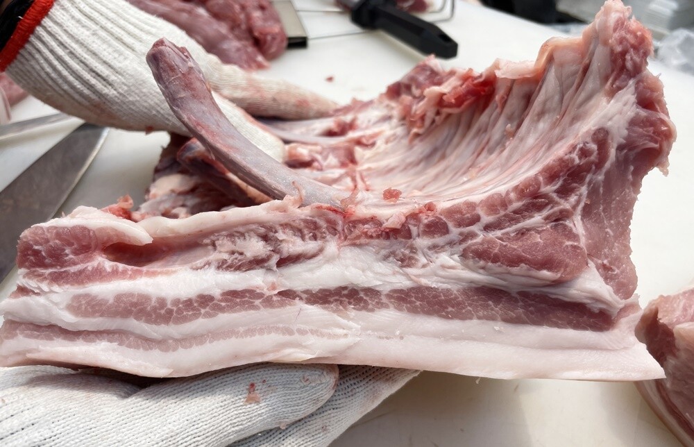 일반 정육점에서 판매하지 않는 뼈삼겹입니다.