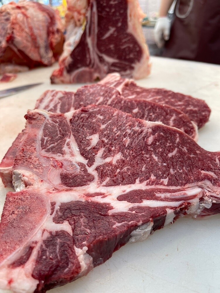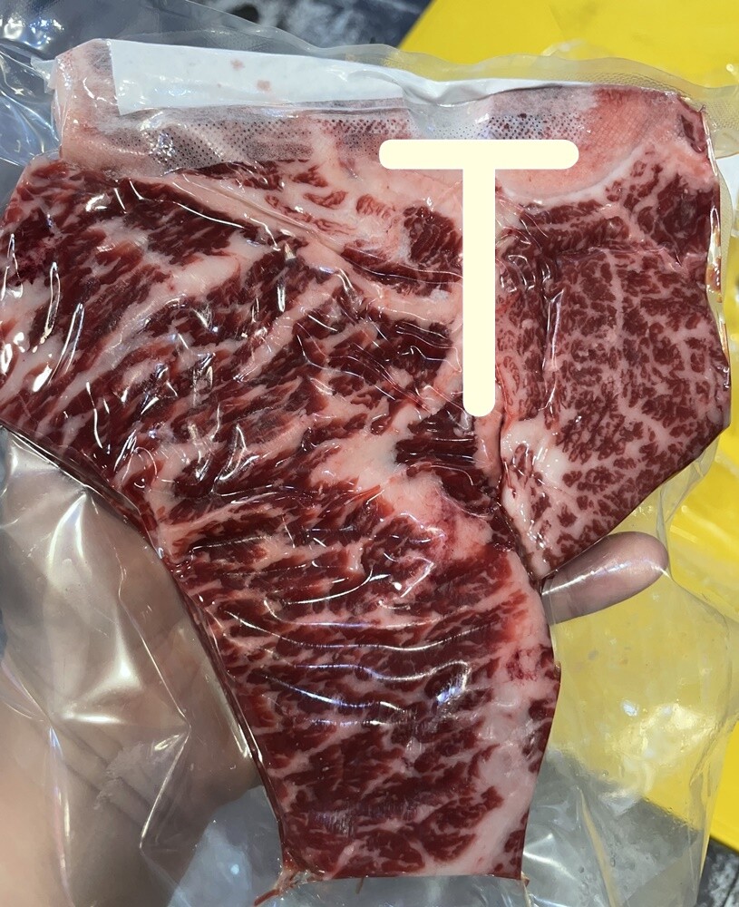 소의 안심과 등심사이에 T 자형의 뼈부분에 있는것이라 붙여진 이름입니다.